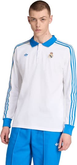 Show your support for your favorite club with this Real Madrid Terrace Icons Long Sleeve Polo from adidas. This polo is perfect for showing your love for Real Madrid in retro style. The embroidered applique club and brand graphics on the chest offer a stylist finish while the three-stripe design extends down sleeves.