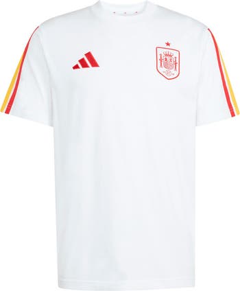 Experience the soft-touch comfort of the Spain National Team FIFA x World Cup Alphaskin T-Shirt from adidas. This regular-fit tee features sewn-on sleeve stripes and heat-sealed team graphics, allowing you to showcase your Spain National Team pride in style. Made from 100% cotton, this T-shirt is the perfect way to support your favorite team in premium comfort.