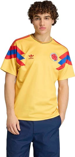 Celebrate the passion and heritage of the Colombia National Team with this 1990 Bringback Jersey. This adidas jersey pays homage to the nation's storied history and unwavering dedication on the pitch. The iconic sewn-on embroidered team crest proudly displays your allegiance, while the embroidered adidas logo signifies quality and performance. Designed for ultimate comfort, this jersey features a tagless collar and backneck taping to eliminate irritation. Show your support for your country with this historic Colombia National Team jersey.