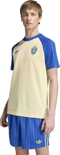 This Sweden National Team Originals T-Shirt by adidas is a tribute to football's rich history. Its soft knit fabric crafted in a slim fit creates a sleek silhouette featuring design details from the heritage-inspired away jersey. Raglan sleeves provide unrestricted movement, whether you're chanting in the stands or celebrating a victory with friends. Adding in the iconic 3-Stripes for the finishing touch, this Sweden National Team shirt delivers a timeless, sports-forward look.