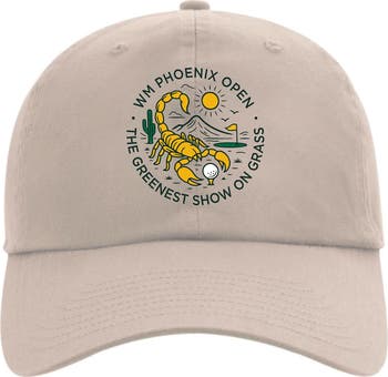 Elevate your golf course style with the official WM Phoenix Open Largo Scorpion Adjustable Hat from Ahead. Crafted from 100% cotton, this hat offers both comfort and durability for long days on the green. The high crown and structured fit provide a classic look, while the curved bill shields your eyes from the sun. Featuring embroidered graphics of the WM Phoenix Open's iconic scorpion logo, this hat displays your love for golf's greatest party. With its adjustable snapback closure, this one-size-fits-most hat guarantees a perfect fit, letting you focus on your swing in ultimate style.