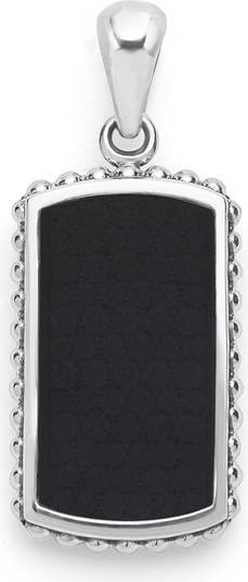 A slab of black agate fills this sterling silver pendant given a dimensional frame with signature Caviar beading.