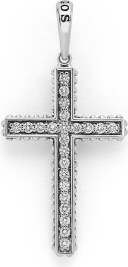 Polished Caviar beading and sparkling diamonds enhance the fiery gleam of this statement-making cross amulet crafted from polished sterling silver.