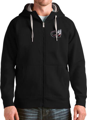 The Men's Antigua Black Colorado Mammoth Victory Full-Zip Hoodie is the ultimate way to show unwavering support for the Colorado Mammoth. This midweight hoodie, perfect for moderate temperatures, features embroidered graphics that proudly display the Mammoth's logo. The full-zip closure and drawstring hood provide added comfort and protection from the elements, while the two front pockets offer convenient storage for essentials. Whether cheering from the stands or showcasing Mammoth pride, this hoodie is a must-have for any true fan.