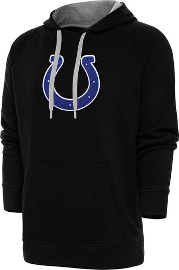 Men's Antigua Black Indianapolis Colts Victory Chenille Pullover Hoodie
