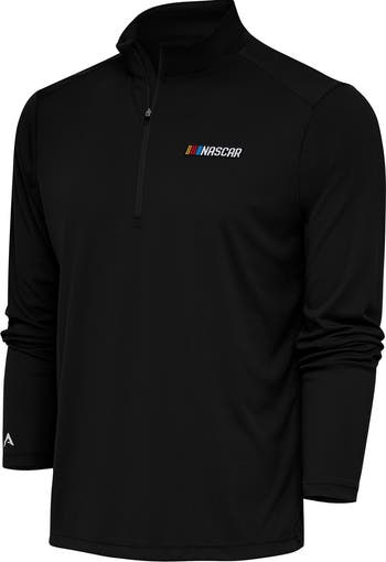 Men's Antigua Black NASCAR Tribute Quarter-Zip Pullover Top