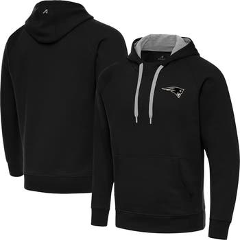 Men's Antigua Black New England Patriots Brushed Carbon Victory Pullover Hoodie