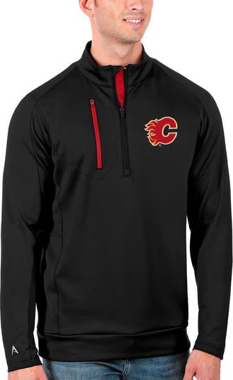 Men's Antigua Black/Red Calgary Flames Generation Quarter-Zip Pullover Jacket