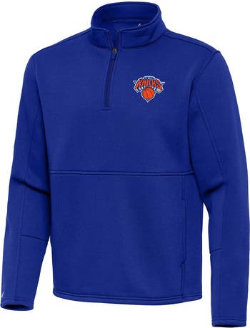 Men's Antigua Blue New York Knicks Twist Quarter-Zip Pullover Top