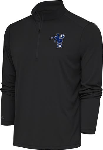 Stay cozy no matter how you choose to enjoy the game with this Indianapolis Colts Throwback Tribute Quarter-Zip Pullover Top made by Antigua. The subtle embroidered logo makes this very versatile, meaning you could wear it with almost anything. The open cuff and bottom hem of this Throwback Tribute Quarter-Zip Pullover Top create a sleek silhouette, while still insulating heat and keeping you comfortable.