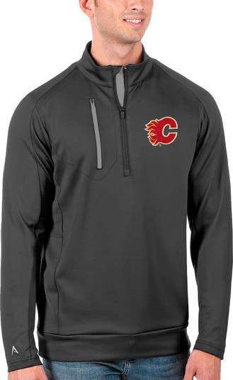 Men's Antigua Charcoal/Silver Calgary Flames Generation Quarter-Zip Pullover Jacket
