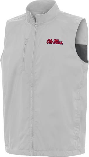 Enjoy extra coverage and showcase your unyielding loyalty to the Ole Miss Rebels by gearing up on this Brisk Full-Zip Vest from Antigua. It features a signature Ole Miss Rebels graphic embroidered on the left chest. The classic vest design makes this additional layer easy to pair with your favorite top or accessory.
