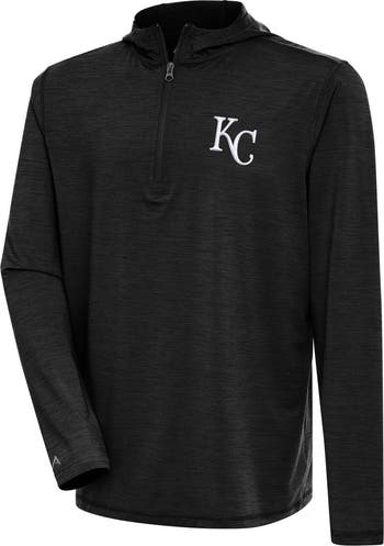 Men's Antigua Heather Black Kansas City Royals Tidy Quarter-Zip Hoodie