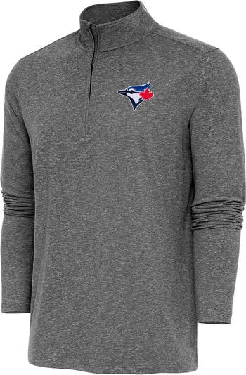 Men's Antigua Heather Black Toronto Blue Jays Hunk Quarter-Zip Pullover Top
