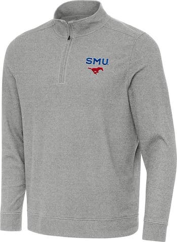 Stay warm and show your SMU Mustangs pride with this Antigua Subtle Quarter-Zip Sweatshirt. Made with soft, brushed fleece fabric, this pullover provides an extra layer of warmth for those chilly game days. The heathered design adds a touch of style, while the embroidered team logo on the left chest proudly displays your SMU Mustangs fandom.