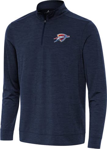 Show your Oklahoma City Thunder pride with this Antigua Bright Quarter-Zip Top. This stylish quarter-zip top is designed with four-way stretch fabric, ensuring exceptional flexibility and mobility both on and off the court. The heather textured finish adds a touch of sophistication, while the embroidered team patch heat-sealed on the left chest proudly displays your Oklahoma City Thunder fandom.