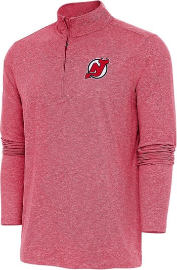 Men's Antigua Heather Red New Jersey Devils Hunk Quarter-Zip Pullover Top