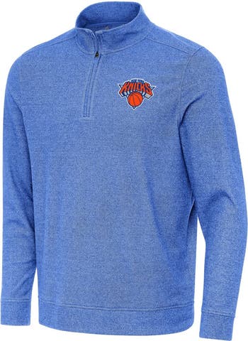 Stay warm and show your New York Knicks pride with this Antigua Subtle Quarter-Zip Sweatshirt. Made with soft, brushed-fleece fabric, this pullover provides an extra layer of warmth for those chilly game days. The heathered design adds a touch of style, while the embroidered team logo on the left chest proudly displays your New York Knicks fandom.