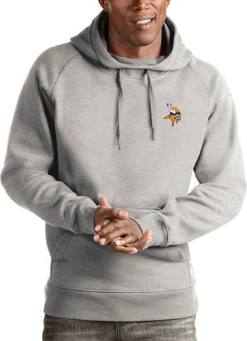 Men's Antigua Heathered Gray Minnesota Vikings Logo Victory Pullover Hoodie
