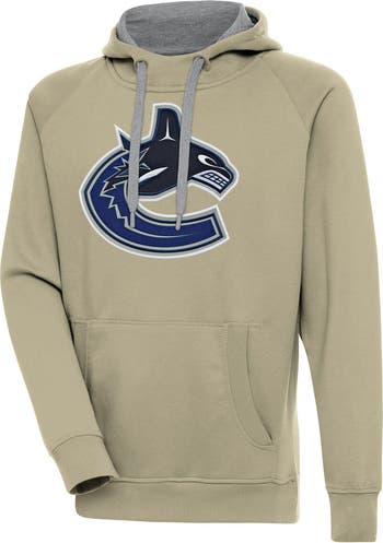 Men's Antigua Khaki Vancouver Canucks Victory Pullover Hoodie