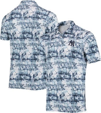 The Men's Antigua Navy New York Yankees Vivid Polo is a stylish and comfortable choice for any Yankees fan. Its vibrant sublimated design and embroidered graphics showcase your team spirit. The droptail hem with side splits provides a relaxed fit. Made from durable polyester, this polo is perfect for cheering on the Yankees both on and off the field.