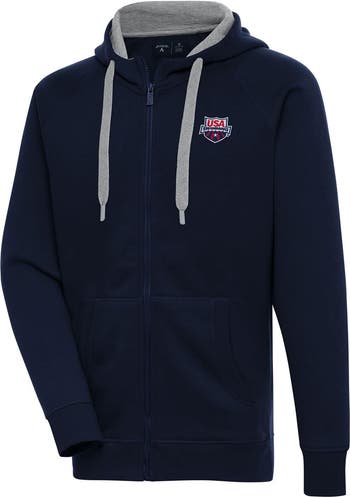 You bleed red, white, and blue. And that's exactly why this USA Swimming Victory Full-Zip Hoodie from Antigua is a must-have in your collection. This hoodie features a hood with drawstrings and front pouch pocket, giving you the option to keep your head and hands away from the wind. As our nation's athletes go for gold, this sweet gear ensures that your love for the USA national team is on full display.