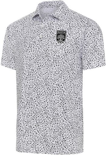 The Men's Antigua White Austin FC Motion Polo is a stylish and comfortable choice for any Austin FC enthusiast. Embroidered graphics and a sublimated floral pattern add sophistication, while hem vents and a self-collar ensure a secure and relaxed fit. Made from durable polyester and spandex, this polo is perfect for showing support for Austin FC both on and off the field.