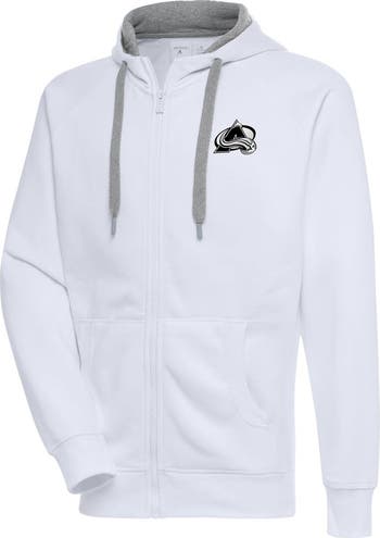Men's Antigua White Colorado Avalanche Metallic Logo Victory Full-Zip Hoodie
