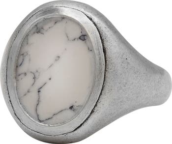 A bezel-set howlite stone brings sleek, minimalist appeal to a sterling silver signet ring with an artfully antiqued finish.