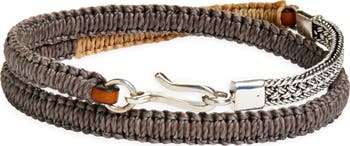 Men's Artisan Sterling Silver & Leather Macramé Double Wrap Bracelet
