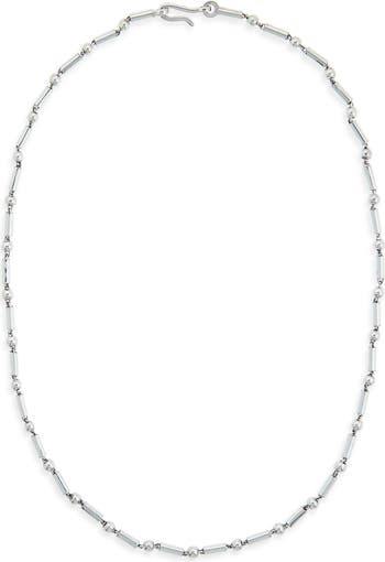 Modern design inspires this handsome sterling silver necklace handcrafted with alternating beads and bars.