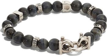 Chatoyant semiprecious stones line this beaded stretch bracelet branded by iconic Gancio hardware.