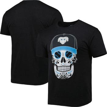 The Men's Black Cadejos de Lake Elsinore Copa de la Diversion Sugar Skull Tri-Blend T-Shirt is a must-have for any devoted Lake Elsinore Storm fan. Its distressed screen print graphics proudly display the team's iconic sugar skull logo, a symbol of the Storm's unwavering spirit. Made from a comfortable blend of polyester, cotton, and rayon, this tri-blend t-shirt is perfect for cheering on the Storm at the ballpark or showing your support wherever you go.
