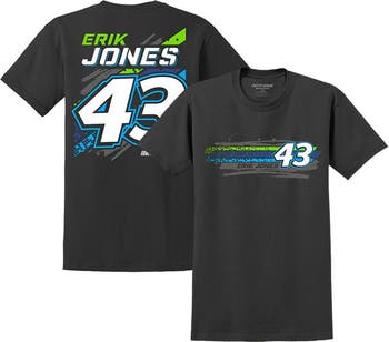 Celebrate your unwavering support for Erik Jones with the Men's Black Erik Jones Extreme T-Shirt. Printed in the U.S.A., this cotton tee proudly displays the official Erik Jones logo, solidifying your allegiance to the NASCAR star. Whether you're cheering him on at the track or simply showing your fandom, this t-shirt is the perfect way to represent Erik Jones and the NASCAR community.