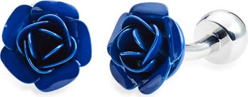 Cobalt-blue roses bring deep color and distinctive polish to cuff links designed to add a fresh finish to the sleeves of any traditional or modern formalwear. Cast from durable brass, they'll bloom season after season every time you need to look nice.