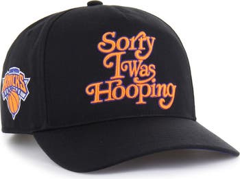 For Hoopers. By Hoopers. This New York Knicks Sorry I Was Hooping Hitch Adjustable Hat from Brand Seen by '47 offers a candid apology that anyone who lives with a lifelong commitment to game can resonate with. Along with its bold raised embroidery on the front panels, the team graphic on the right-side crown demonstrates your love for your squad goes beyond the court. Adjust the snap closure to your perfect fit and let this headwear speak volumes about unapologetic love for basketball.