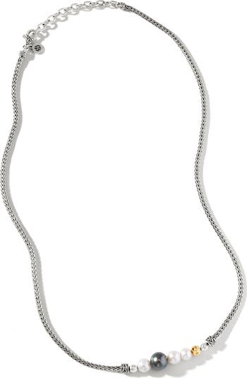 Cultured pearls and hammered beads center this intricate chain necklace handcrafted using traditional Balinese techniques.