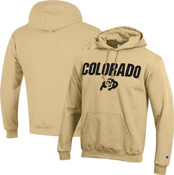Represent your beloved Colorado Buffaloes with the Champion Gold Colorado Buffaloes Straight Over Logo Powerblend Pullover Hoodie. This midweight hoodie is perfect for game days or any day you want to show your support for the Buffaloes. The fleece lining will keep you warm and comfortable, while the extra stitch details add durability. The fabric resists shrinking and pilling, so you can wear it season after season. Wider rib-knit cuffs and hem provide a snug fit, and the front pouch pocket is perfect for storing your essentials. As part of the Champion Made initiative, this hoodie is made with eco-friendly Powerblend fleece that uses traceable US-grown cotton and recycled polyester fibers.