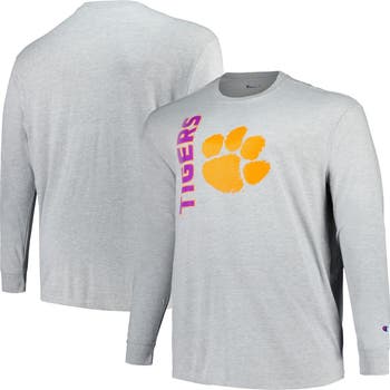 Men's Champion Heather Gray Clemson Tigers Big & Tall Mascot Long Sleeve T-Shirt