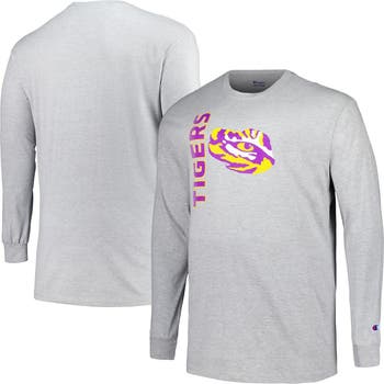 Men's Champion Heather Gray LSU Tigers Big & Tall Mascot Long Sleeve T-Shirt