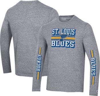 The Men's Champion Heather Gray St. Louis Blues Tri-Blend Dual-Stripe Long Sleeve T-Shirt is the perfect way to show your unwavering support for the St. Louis Blues. With its distressed screen print graphics and tri-blend material, this shirt is both stylish and comfortable. The slight droptail and crew neck add a touch of sophistication, making it perfect for any occasion. Whether you're cheering on the Blues at the game or just showing your team spirit around town, this shirt is sure to turn heads.