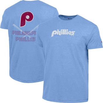 When it's time to rally behind the Philadelphia Phillies, this Champion Tri-Blend T-Shirt delivers a classic look with modern comfort. The soft blend of polyester, cotton and rayon provides a comfortable and breathable fit, whether you're enjoying an afternoon at the ballpark or a night around the house. With vintage-inspired distressed graphics printed on the front and back, this piece brings a touch of old-school cool to any fan's wardrobe for a new game-day favorite.