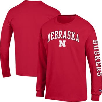 Men's Champion Scarlet Nebraska Huskers Arch Over Logo 2-Hit Long Sleeve T-Shirt