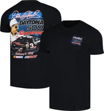 Celebrate Dale Earnhardt's legendary 1998 Daytona 500 victory with the Checkered Flag Sports Men's Black Dale Earnhardt 1998 Daytona 500 Champion Anniversary T-Shirt. This commemorative tee features screen-print graphics that honor the iconic Dale Earnhardt and his historic triumph in the NASCAR race. Show your unwavering support for the legendary driver and the esteemed Dale Earnhardt organization with this stylish and meaningful tribute.