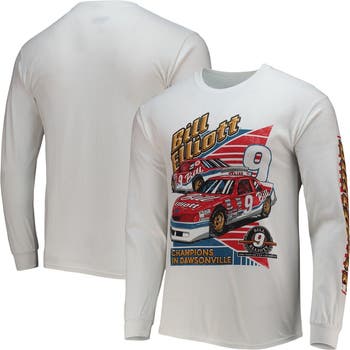 Men's Checkered Flag White Bill Elliott 2-Spot Long Sleeve T-Shirt