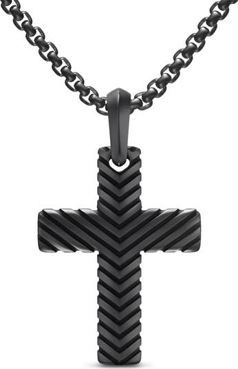 Textured chevron stripes enhance the signature texture of this handsome cross pendant rendered in black titanium.