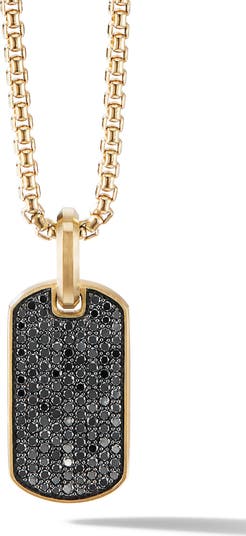 A pavé-diamond tag with a chevron-etched reverse side adds a modern, sculptural look to your necklace or bracelet.
