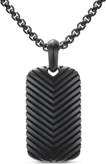 Chevron stripes add texture and dimension to this black titanium tag pendant that will make a great addition to your favorite chain.