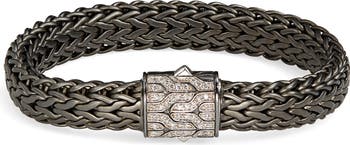 This intricately woven bracelet is handcrafted by the time-honored techniques of Balinese artisans and features a diamond-encrusted pusher clasp.