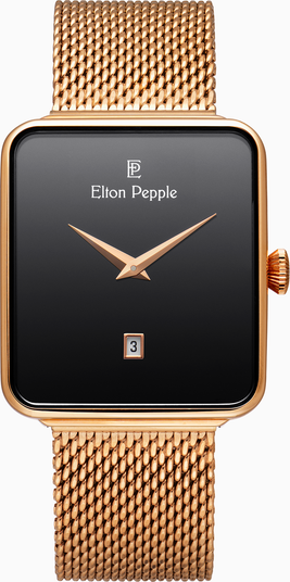 - Strap: Metal Mesh, Rose Gold PVD Stainless Steel 316, Safety Clasp